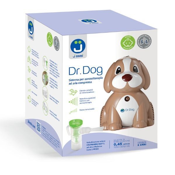 Nonostante il suo design divertente, Dr. Dog non è un giocattolo ma un aerosol ad aria compressa di elevata efficienza e tecnologia avanzata: è stato studiato per garantire un adeguato comfort e la massima sicurezza durante la terapia ed è in grado di nebulizzare in breve tempo tutti i farmaci per aerosolterapia.